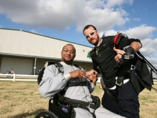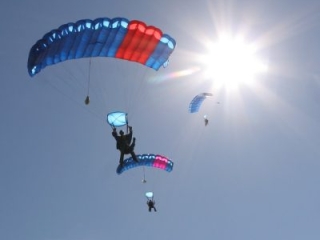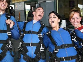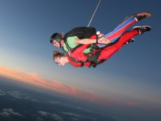 - Jump harnessed to an experienced instructor after a brief class